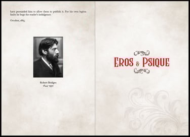 Eros & Psyche – A Poem in Twelve Measures, de Robert Bridges, é uma das recriações poéticas mais rigorosas e menos conhecidas do célebre mito narrado por Apuleio. Publicado originalmente em 1885, o poema ocupa um lugar singular na tradição literária inglesa: não como adaptação livre, mas como uma construção formal deliberada, inteiramente organizada em doze Measures, nas quais ritmo, proporção e progressão simbólica são tão centrais quanto a narrativa.